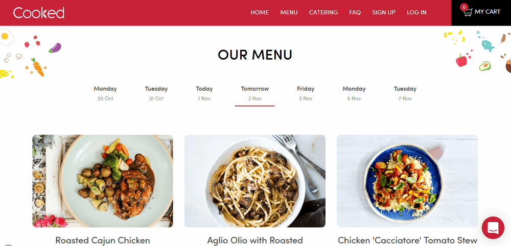Like dahmakan, cooked also offer more than 10 healthy dishes for delivery everyday. They accept lunch delivery only and order must be placed before 11am every day, though you can order in advance for next days.