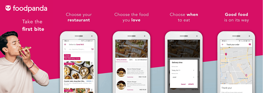 Foodpanda has a wide coverage in Malaysia including Kuala Lumpur, Petaling Jaya, Subang, Shah Alam, Cyberjaya and Penang (Foodpands is available in India, Pakistan, Bangladesh, Singapore, Saudi Arabia, Hong Kong , Philippines, Thailand, Taiwan and Brunei)
