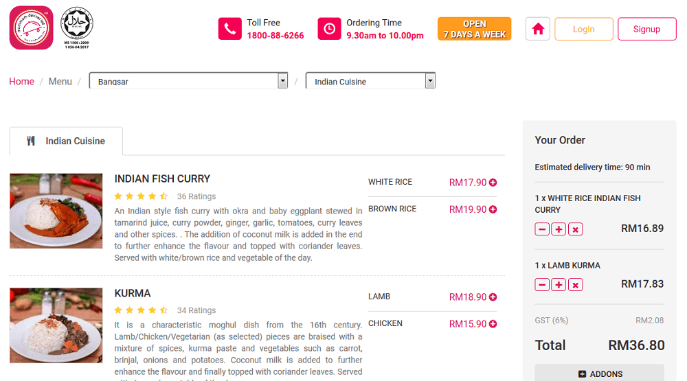 As they claim, Mammam is a Halal Certified Asian Meals Delivered On-Demand service. Mammam offers most of the cuisiness in Malaysia including Chinese, Indian, Malay and Thai. Food price starts from ~15 MYR and their Toll Free Number 1800-88-6266 is good help for order issues. By accepting credicard, online payments and cash on delivery, Mammam makes payment very convenient. You can see, this is a good place to order authentic Malay dishes like Nasi Lemak, Sambal petai, Rendang etc. Read about their delivery service and options.