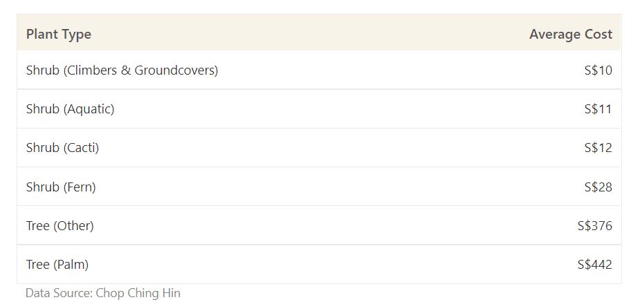 Landscapers and gardeners may also be required for routine upkeep. Gardeners will be able to trim your shrubbery, mow the lawn, pull out weeds to keep your garden healthy and beautiful on a weekly or biweekly basis. Of course, you always have the option to do the gardening yourself if the foundation of your garden is already there. In this case, you’ll have to invest in the plants and the gardening tools. You can buy plants from nurseries or rescue a second-hand plant from sites like Carousell. Typically, large trees will cost the most, ranging from S$5 for saplings to a few thousand dollars for mature varieties. Smaller shrubs like ferns and groundcovers are much cheaper, typically costing S$10-S$30 per plant. You’ll also need gardening tools like trowels and shears, which can be bought at nurseries or e-commerce sites like Lazada for roughly S$20 per tool.